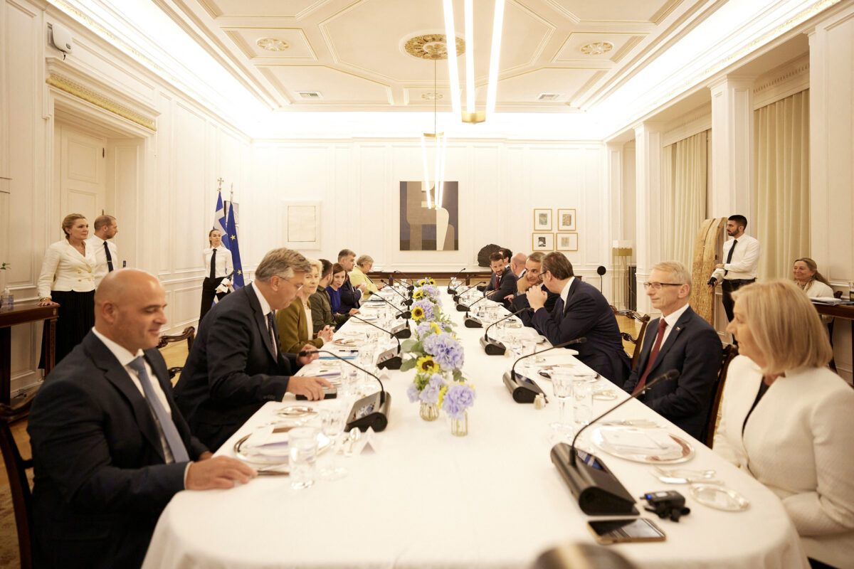 7. Danas smo u Atini razgovarali o budućem putu, kako bi ova vizija Evrope postala stvarnost. Podvukli smo da je važno da se izvrši vizija Evropske unije koja je obogaćena Zapadnim Balkanom, Ukrajinom i Moldavijom. Naglasili smo potrebu za ponovnom energijom i fokusiranim procesom proširenja koji je opipljiv i kredibilan, bez prečica do postavljenih uslova. Izrazili smo našu posvećenost da podržimo Ukrajinu i Moldaviju da preduzmu naredne korake u procesu pristupanja Evropskoj uniji čim završe neophodne reforme.