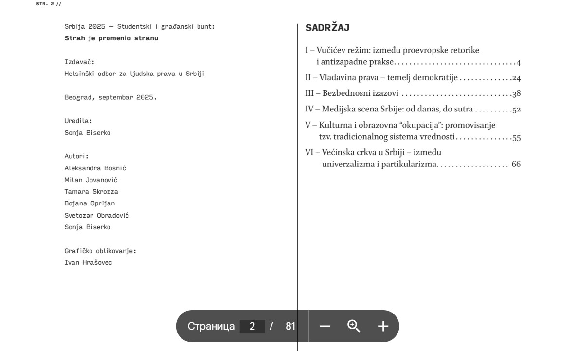 Deo iz poglavlja Bezbednosni izazovi iz Izveštaja Helsinškog odbora za ljudska prava u Srbiji