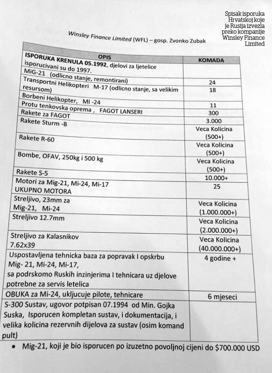 Izrazivši razočaranje ponašanjem Hrvatske, bivši ambasador Rusije u Zagrebu Anvar Azimov to je potvrdio kada je Hrvate podsetio ko ih je u vreme međunarodnog embarga naoružavao i spasavao. Tokom razgovora s trgovcem oružja Zvonkom Zubakom, ambasador je na sopstveni zahtev dobio spisak ruskih isporuka Hrvatskoj s kojima je sagovornik upoznat, ali je insistirao i na potpunoj informaciji o isporučenom PVO sistemu S-300. Iako sudbina sistema S-300 i dalje predstavlja tajnu u Hrvatskoj, ambasador je naglasio da su ga Hrvati dobili da obuzdaju Srbe uoči “Oluje”, a sada se ne zna gde je.