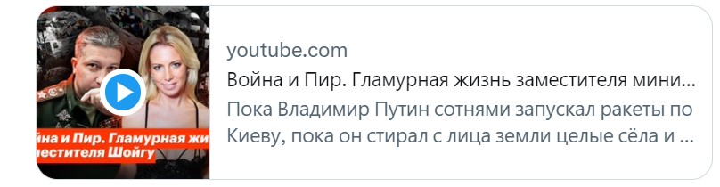 Pevčihova je 19. aprila 2023. na svom nalogu objavila niz tweetova koji se bave suprugom drugog čoveka Ministarstva odbrane Rusije TIMURA IVANOVA, zamenikom Sergeja Šojgua.